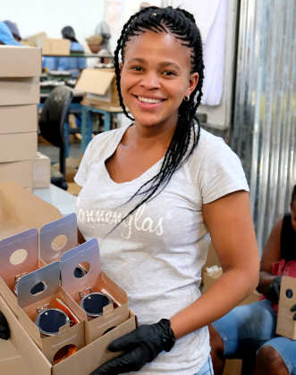 Im Jahr 2022 liegt die offizielle Arbeitslosenquote in Südafrika bei 35% (zum Vergleich: in Ghana offiziell bei 4,7%). Die wirkliche Quote ist geschätzt sogar noch höher und geht mit großer sozialer Ungerechtigkeit einher. Vor diesem Hintergrund sind Projekte wie das von Sonnenglas umso wichtiger. Die Mitarbeitenden, die die Sonnengläser herstellen, stammen allesamt aus den Townships von Johannesburg, Alexsandra und Soweto. Alle waren vor ihrer Anstellung bei Sonnenglas arbeitslos. Hier erhalten sie nun eine feste Anstellung, übertarifliche Bezahlung, soziale Absicherung und Weiterbildung.